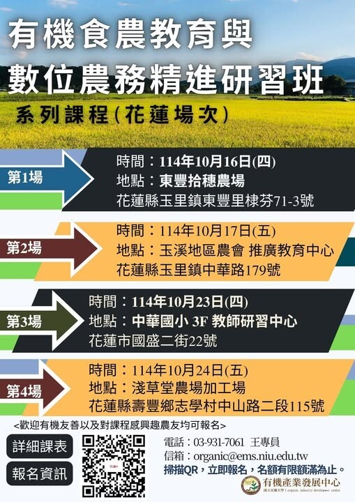 【有機食農教育 x 數位農務精進 研習班|花蓮場】 🌾