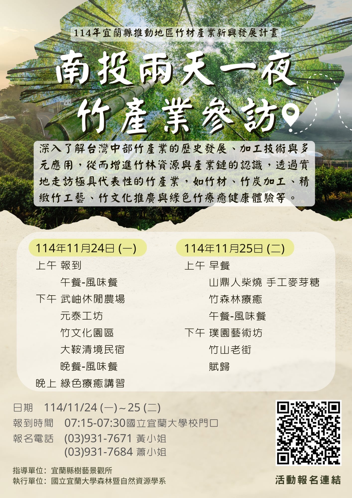 轉知:114年宜蘭縣竹材產業計畫—南投竹產業參訪活動